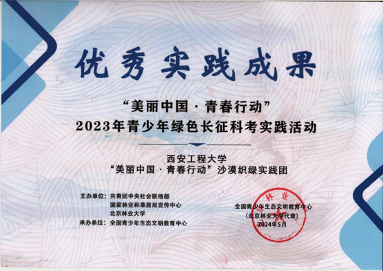 近日,2023年绿色长征科考实践活动优秀实践成果奖揭晓,永利官网城市规划与市政工程学院“美丽中国·青春行动”沙漠织绿实践团获评优秀实践成果。