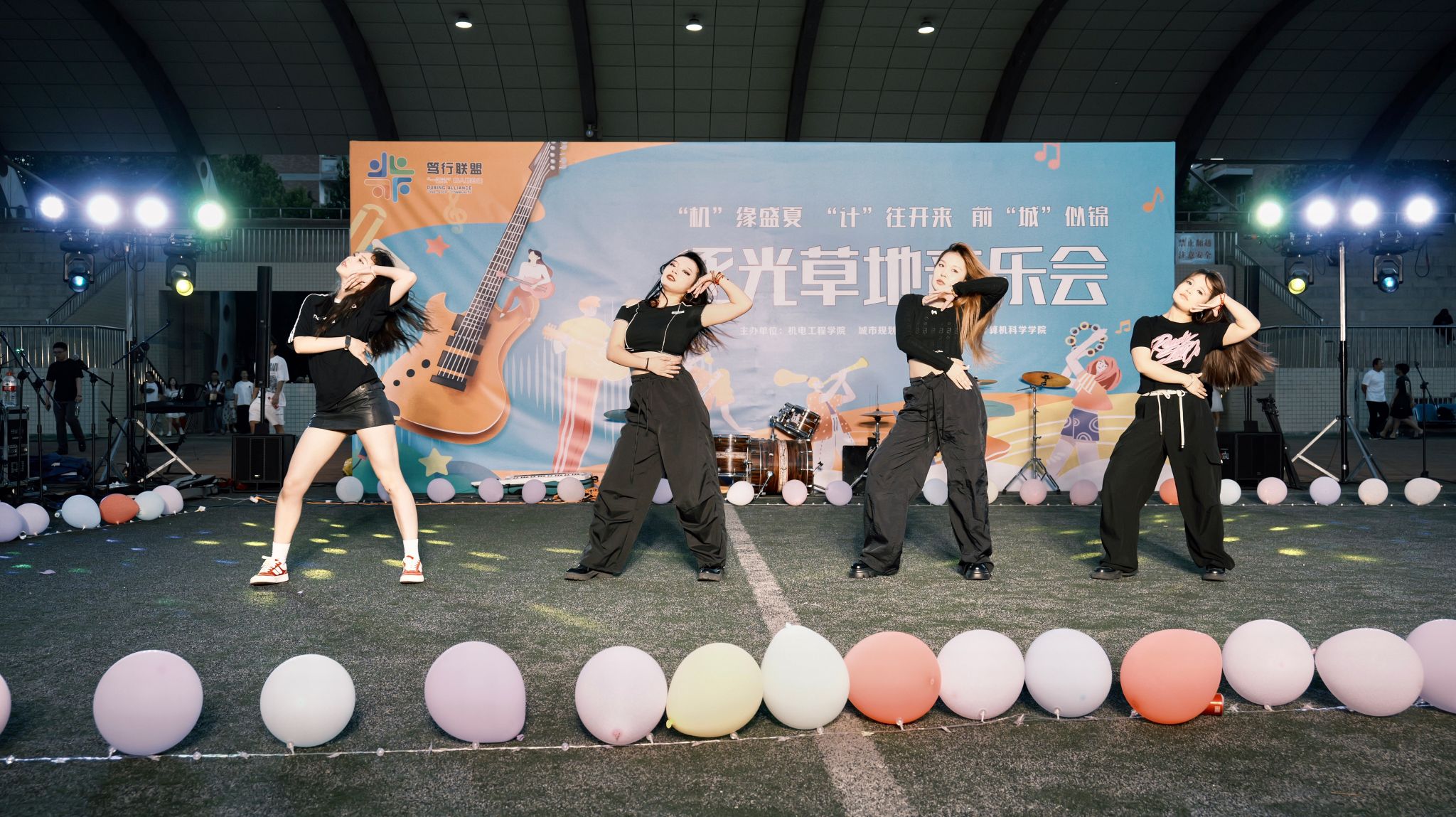 音乐会开场,校党委学生工作部副部长李路瑶为毕业生送上毕业祝福与寄语,殷殷嘱托,深切祝福,展现了学校对青年学子的关爱和期望。音乐会现场,灯光璀璨,气氛热烈。机电工程学院、城市规划与市政工程学院、计算机科学学院的学生带来的表演精彩连连,悠扬的音乐声此起彼伏,热情的舞蹈激起现场一阵阵的声浪。自由浪漫的草坪上,同学们或闲谈交流,或拍照留念,或跟随表演一同放声欢歌,每个人脸上都洋溢着幸福的笑容。在音乐会接近尾声时,师生共同合唱经典歌曲《再见》,为毕业生们送上了最真挚的祝福。