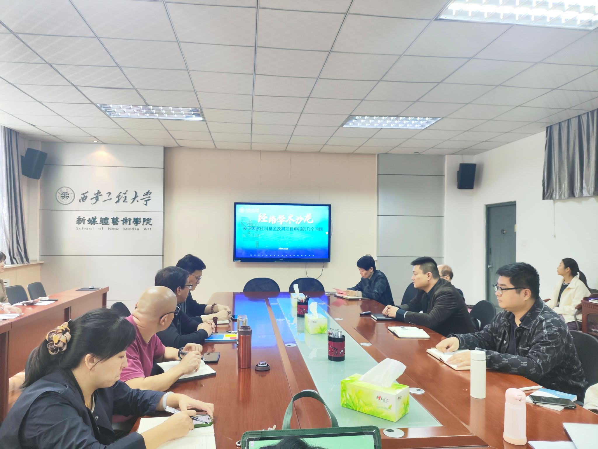 10月18日下午,永利官网在金花校区新媒体艺术学院三楼会议室举行第四十三期经纬学术沙龙活动,邀请西北大学二级教授、国家社科基金重大项目首席专家、国家社科基金学科规划评审组专家王铁铮作国家社会科学基金申报专题报告,新媒体艺术学院骨干教师、服装与艺术设计学院教师参加了活动,学术沙龙由新媒体学院副院长丛红艳教授主持。