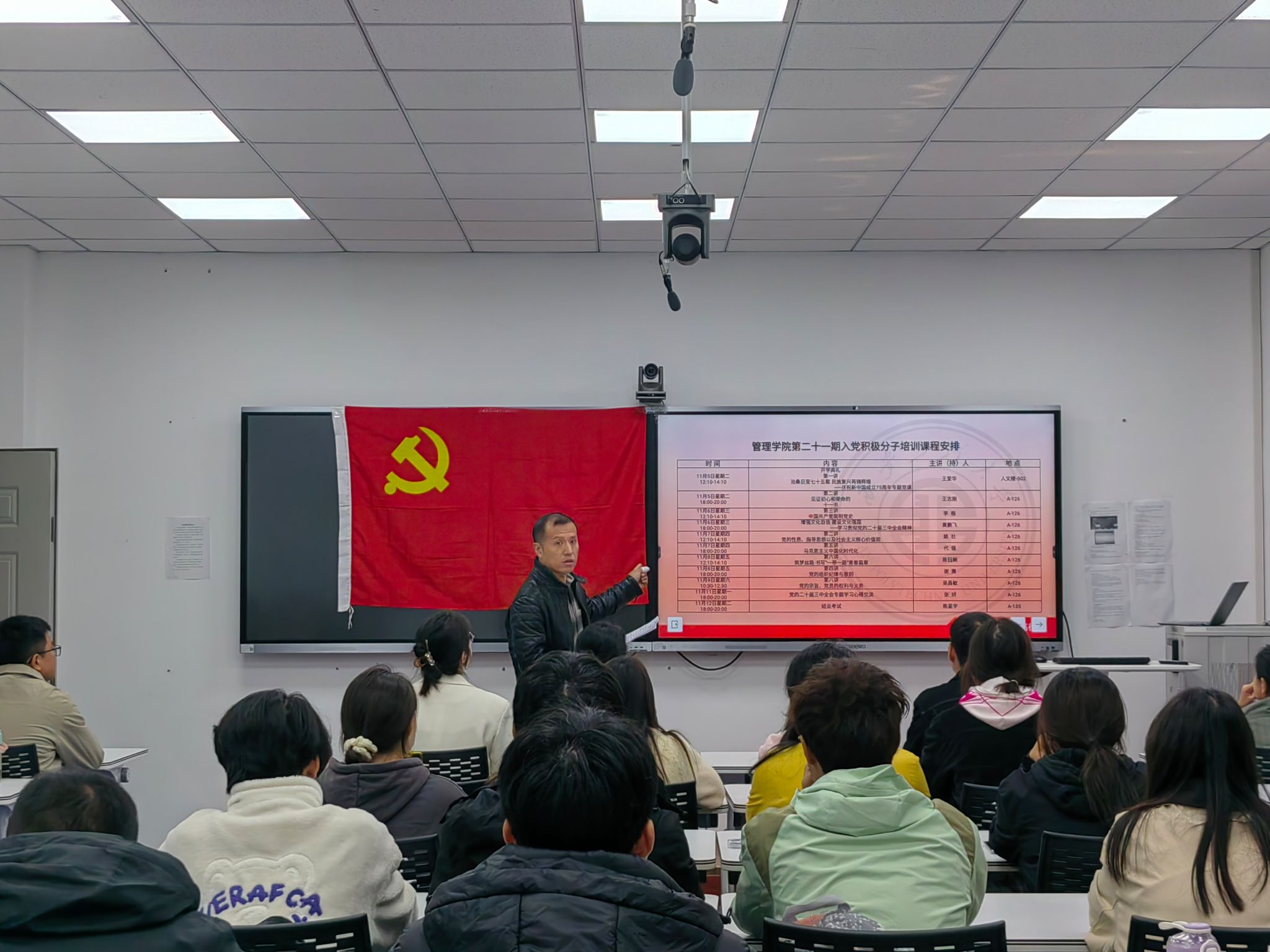 为深入学习贯彻习近平新时代中国特色社会主义思想和党的二十届三中全会精神,进一步加强对入党积极分子的培养、教育和考察,提高积极分子的思想政治素质和理论水平,11月5日中午,管理学院在临潼校区人文管理楼502室举行学院第21期入党积极分子培训班开班仪式。院党委书记王爱华、院党委副书记代锴、各学生党支部书记以及33名入党积极分子参加开班仪式。仪式由兼职组织员吴昌敏主持。