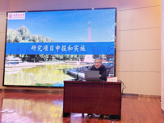 冯博琴教授对教改项目的选题到结题全流程进行了多维度、全方位解读,从申报书填写常见15个问题、研究项目实施谋划以及关键表单的撰写等方面进行了深入讲解。他指出,要提高申报书质量,必须要强调主题凝练,围绕中心思想,注重新颖程度,突出问题导向思维主线在教育教学改革研究中的重要性。冯博琴教授的讲解干货满满,为教师作了一场精彩的教育教学改革研究项目申报培训。