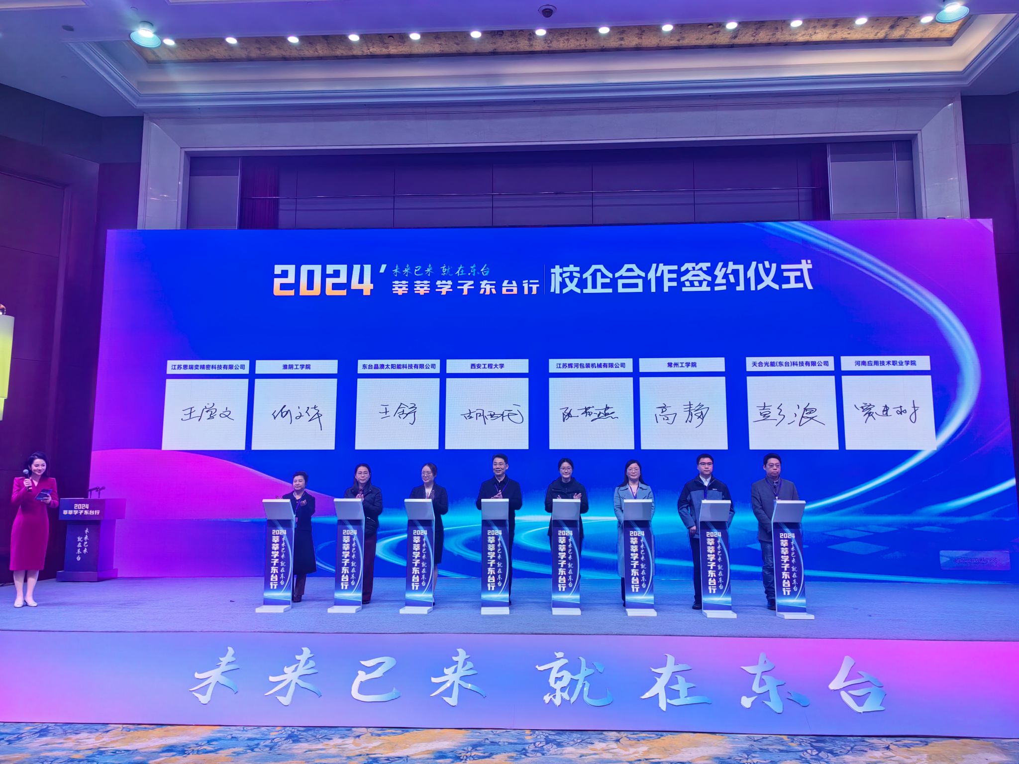 会前,刘玉森在采访中表示,学校始终把高校毕业生就业工作摆在突出位置,东台市产业基础雄厚,企业发展前景广阔,希望双方进一步加强交流,促进更多学子来东台就业,欢迎东台企业与学校开展产学研合作;推介对接会上举行了校企合作签约仪式和引才大使聘任仪式,胡西民代表学校与晶澳太阳能科技有限公司签约合作,刘玉森被聘任为东台引才大使。