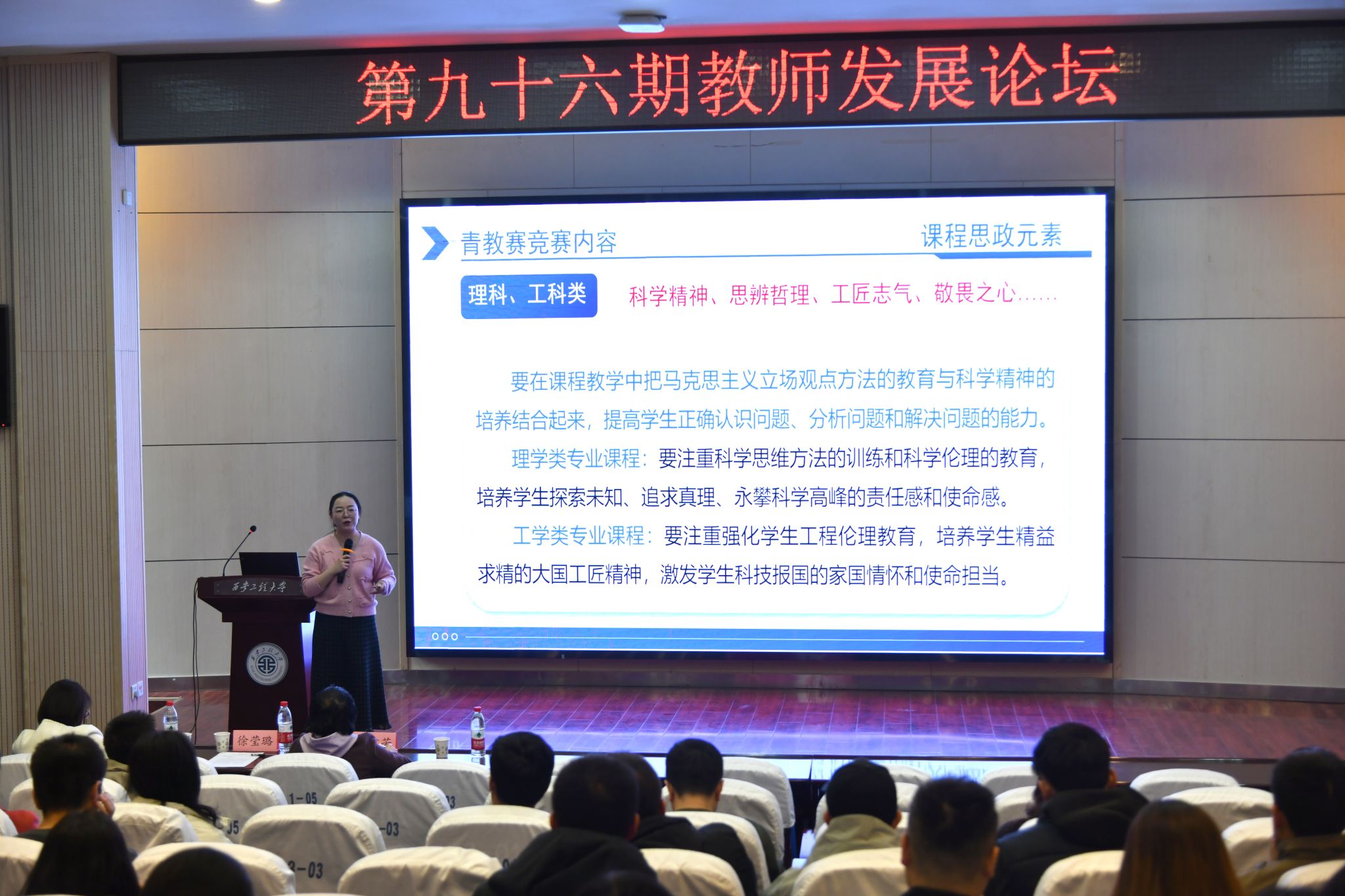 3月19日下午,永利官网在金花校区举办第九十六期教师发展论坛活动,邀请第七届全国高校青年教师教学竞赛工科组一等奖获得者、西安建筑科技大学土木工程学院徐莹璐老师作《课堂教学探索与实践——第七届全国高校青年教师教学竞赛经验分享》专题报告,14个学院(部)近120人参加活动,活动由人事处副处长马贵梅主持。