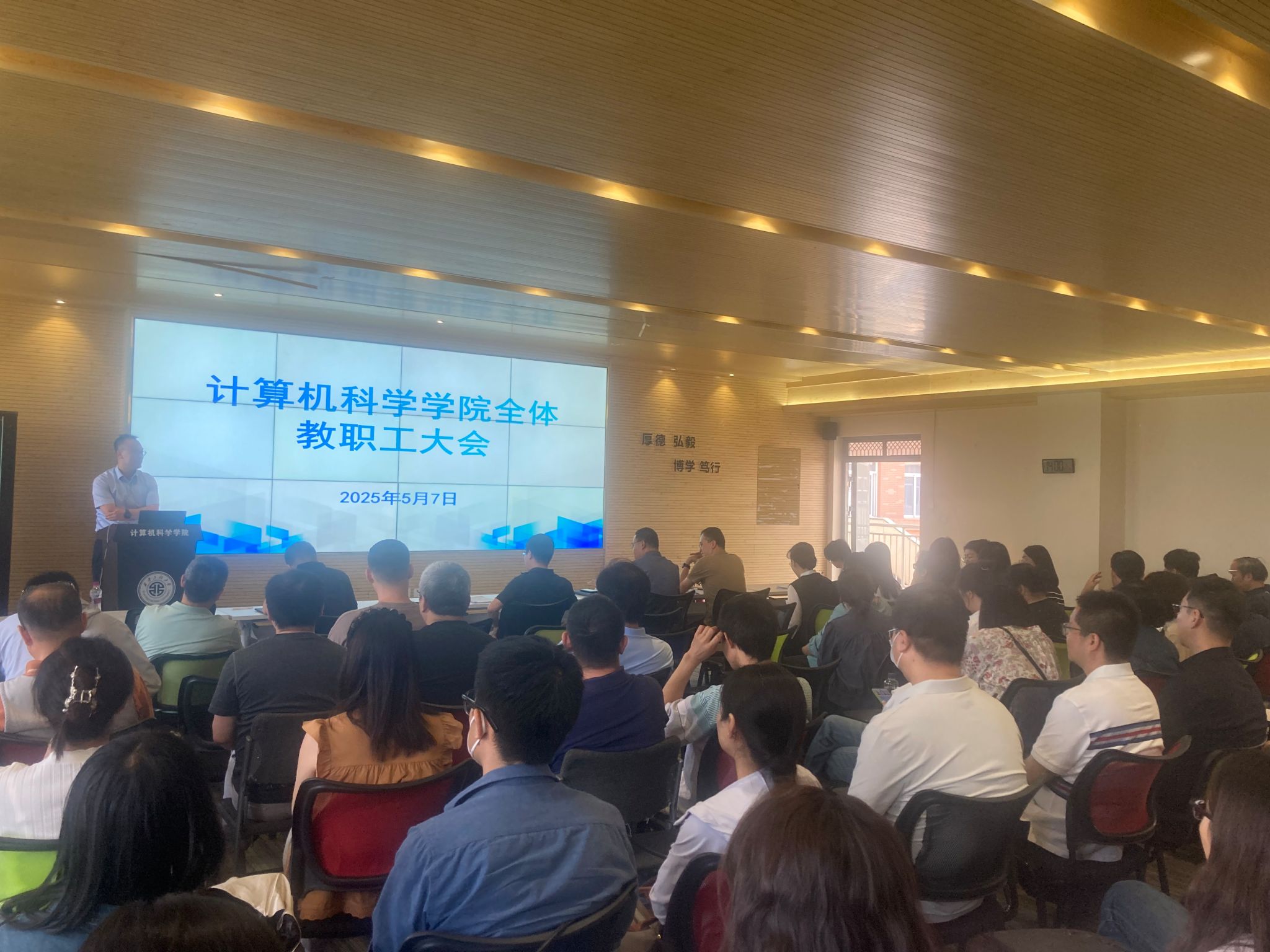 5月8日,计算机科学学院在学院报告厅召开全体教职工大会,学院班子成员结合负责或分管工作,具体部署了学院全员促就业、师德师风建设、安全稳定、学风教风提升、深入贯彻中央八项规定精神学习教育等重点工作。