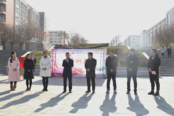 仪式上,王志致辞,他指出,校园文化建设离不开广大师生积极参与,永利官网从“十二五”至今一直提倡校园文化建设工程。要形成制度,精神,文化,行为实践四大层面的校园文化建设。他强调实践是学习的重要部分,希望该活动是校园文化建设的重要部分,更是起点高,持续时间长的活动。随后由王志和张慧为“艺术长廊”揭牌,并合影留念。