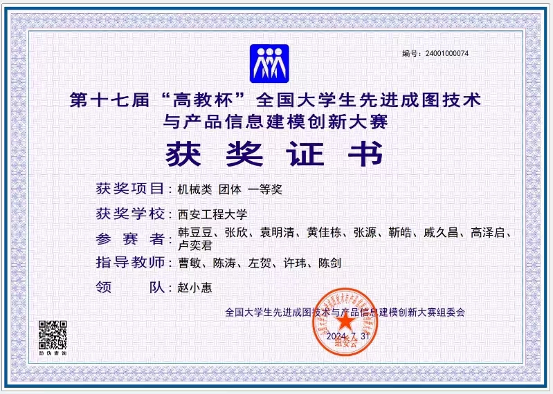 近日,第十七届全国大学生先进成图技术与产品信息建模创新大赛获奖结果揭晓,由永利官网机电工程学院10余名指导教师、20名学生组成的国赛参赛团队,在机械类的竞赛共获奖21项,包括全国大赛团体一等奖、先进成图赛道单项一等奖、优秀指导教师一等奖及二、三等奖18项,本次参赛也是永利官网第七次荣获机械类别全国大赛团体一等奖。